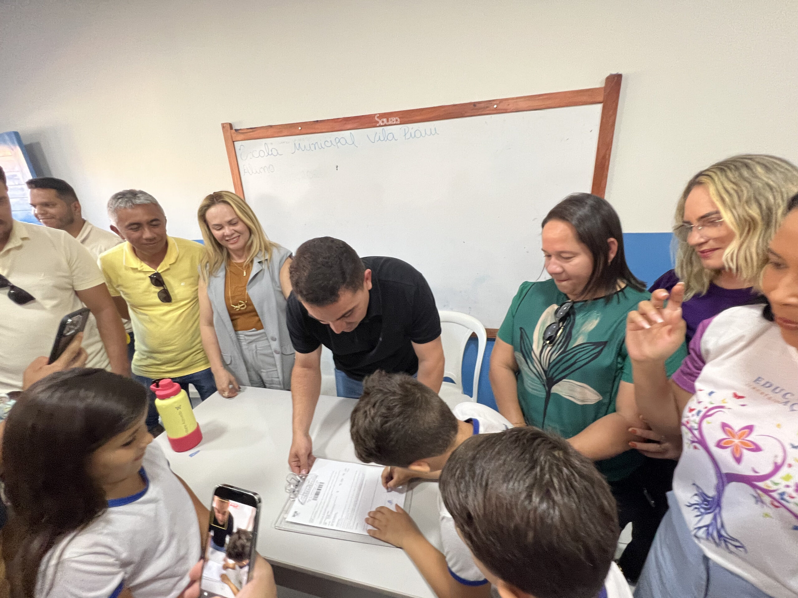 A educação de Serra do Mel ganhou, na quarta-feira, 22, mais um importante capítulo de conquistas. O prefeito Kênio Azevedo (PP) assinou, ao lado da secretária municipal de Educação, Milane Azevedo, do vice-prefeito Cione Filho (MDB) e do secretário de Infraestrutura, Iranilson Lopes, a ordem de serviço para a reforma e ampliação da Escola Municipal Antônia Vicente do Nascimento, localizada na Vila Piauí.