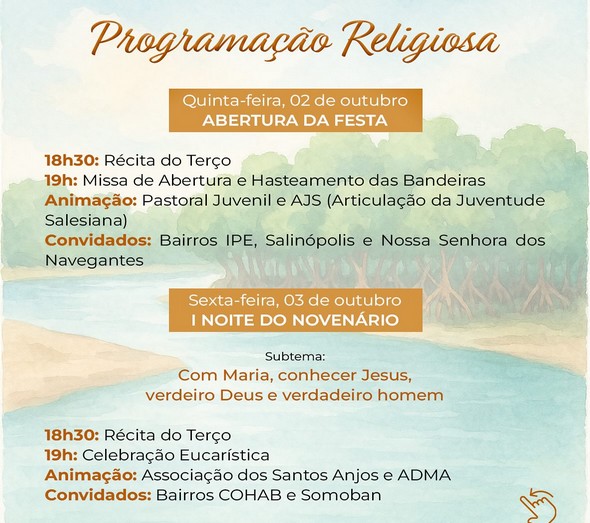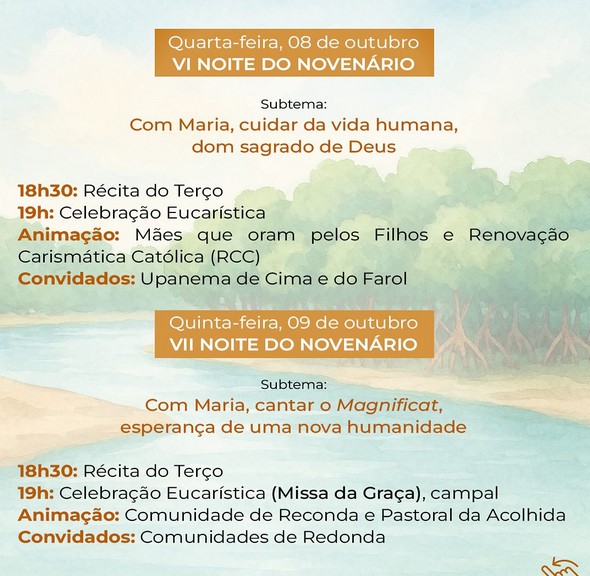 “Com Maria, Mãe da esperança, conhecer Jesus e cuidar da vida” é o tema da festa de Nossa Senhora Aparecida, padroeira do bairro homônimo, na zona urbana de Areia Branca.