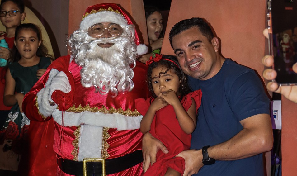 Chegada do Papai Noel emociona famílias e transforma a noite em Serra do Mel