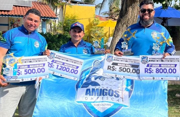 A equipe do Clube Amigos da Pesca de Areia Branca, na Costa Branca potiguar, fez um verdadeiro “arrastão” na classificação e premiação do IV Torneio Pesca de Praia Cearense 2025, realizado no último final de semana, na praia da Caponga, município de Cascavel (CE).