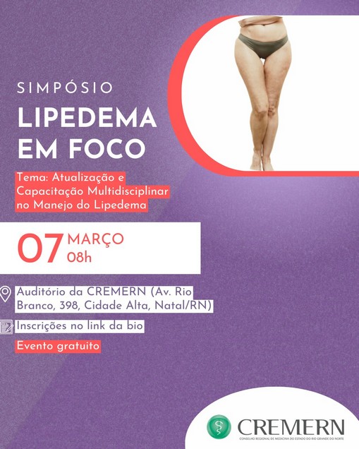 O Conselho Regional de Medicina do Estado do Rio Grande do Norte (Cremern) promove, no próximo mês, o evento “Lipedema em Foco”, um encontro científico que reunirá especialistas de diversas áreas para discutir os avanços no diagnóstico e no tratamento do lipedema, condição crônica que afeta majoritariamente mulheres e ainda é subdiagnosticada no Brasil.
