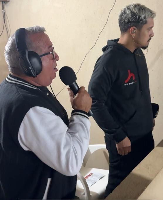 João de Castro transmitindo mais um clássico ao lado do comentarista Hanani Ferreira