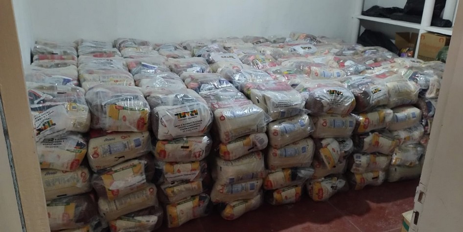 É concedida uma cesta de alimentos por família (4 pessoas), se a família tiver mais integrantes, pode ser aumentado o número de cestas. A cesta pesa 21,5 kg.