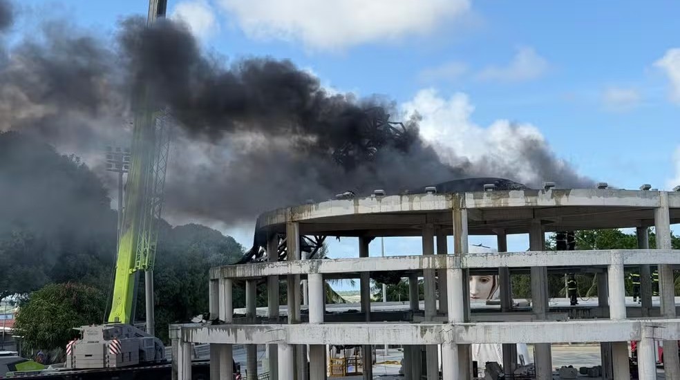 “Tinham dois operários dentro fazendo uma solda, quando deu um curto e a fagulha pegou o material. Tem resina, tem o próprio isopor… Propagou chama e aconteceu o pior”, disse o fiscal de obras.
