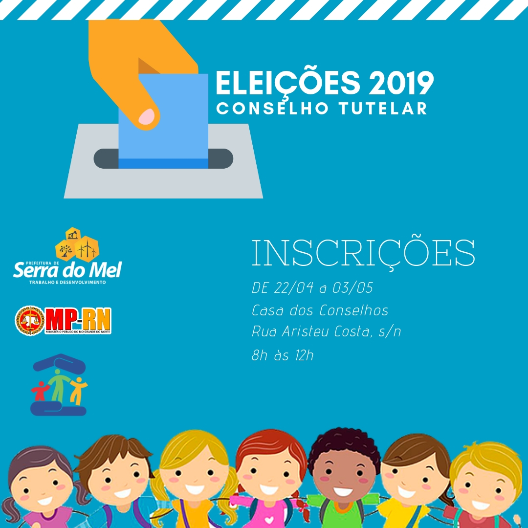 A inscrição dos candidatos ao cargo de Conselheiro Tutelar deverá ser efetuada pessoalmente, na sede do Conselho Municipal dos Direitos da Criança e do Adolescente, no período de 22 de abril a 3 de maio de 2019, das 8h às 12h, situado, na Rua Aristeu Costa, s/n.