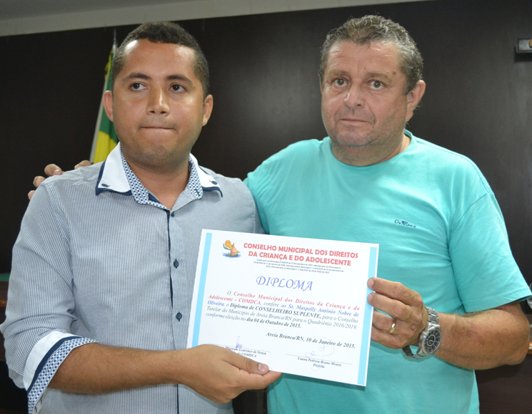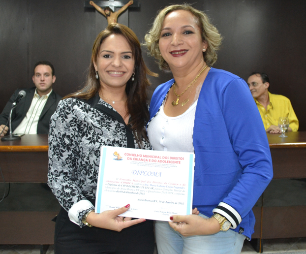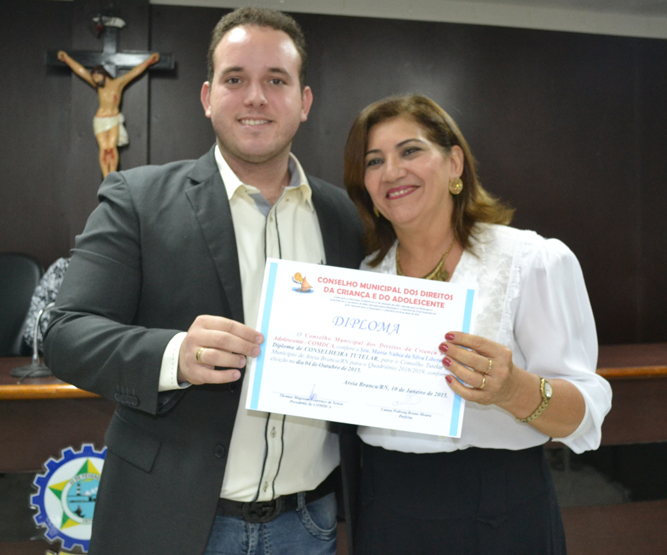 Presidente do Comdca, Thomas Magnum, entrega diploma à suplente Fátima Azevedo