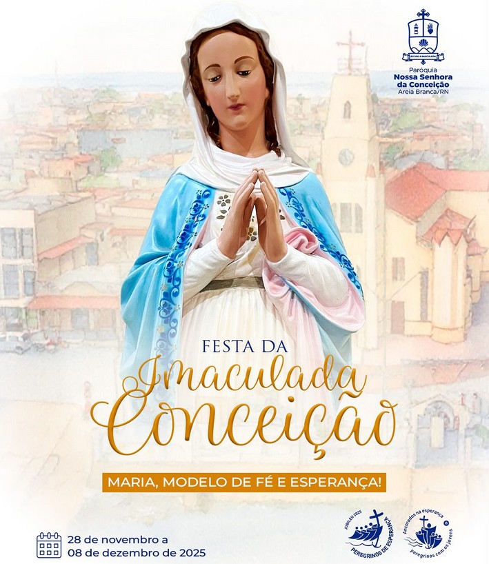 “Maria, modelo e fé e esperança!”, é o tema geral da Festa da Imaculada Conceição 2025, padroeira de Areia Branca. A programação dos festejos que começam dia 28 de novembro e vão até 8 de dezembro, foi divulgada na terça-feira, 18, pelo pároco da cidade, padre Gilvan Galdino Tavares.