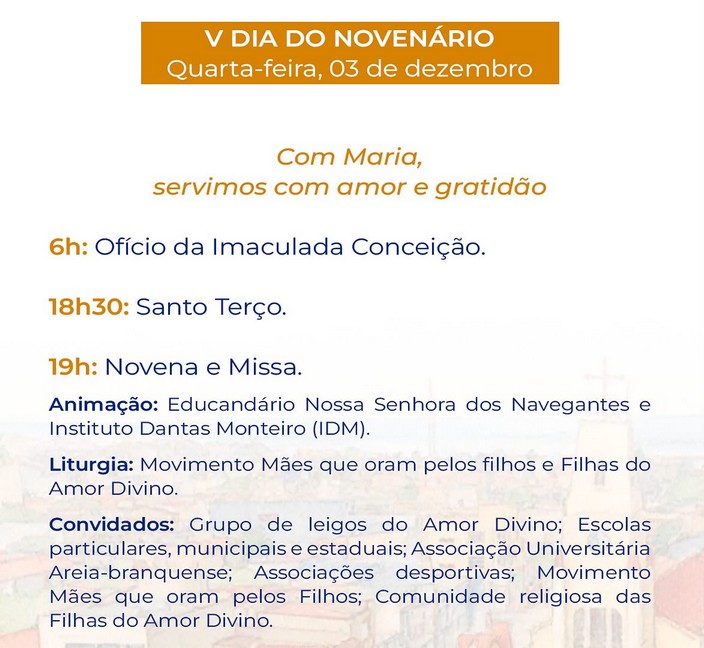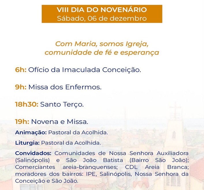 Programação da festa da padroeira de Areia Branca – De 28 de novembro a 8 de dezembro de 2025