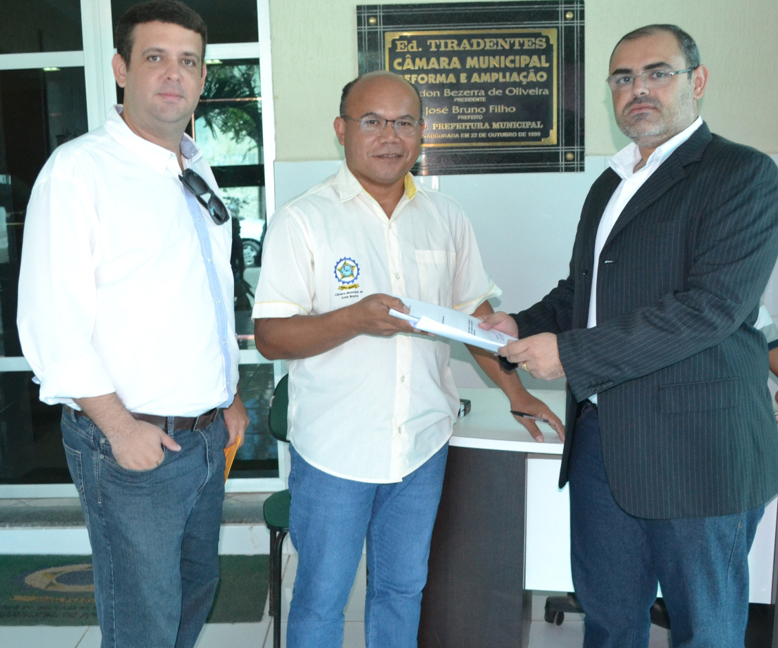 Advogado Cid Neto acompanhou entrega do projeto pelo procurador Thiago Rebouças a Nonato Souza (centro), da Câmara
