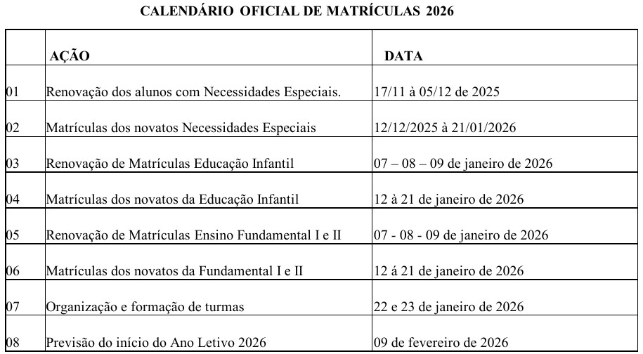 A Secretaria de Educação reforça a importância de que pais, responsáveis e estudantes fiquem atentos aos prazos estabelecidos para garantir a vaga na rede pública municipal de ensino em 2026. O cumprimento do cronograma é fundamental para a organização das unidades de ensino e para o planejamento do ano letivo.