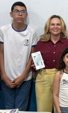 Como forma de reconhecimento, o primeiro recebeu um aparelho celular e o terceiro lugar um Kindle entregue pela secretária durante visita à escola.