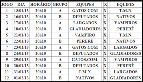 Confira, abaixo, a tabela dos jogos da competição: